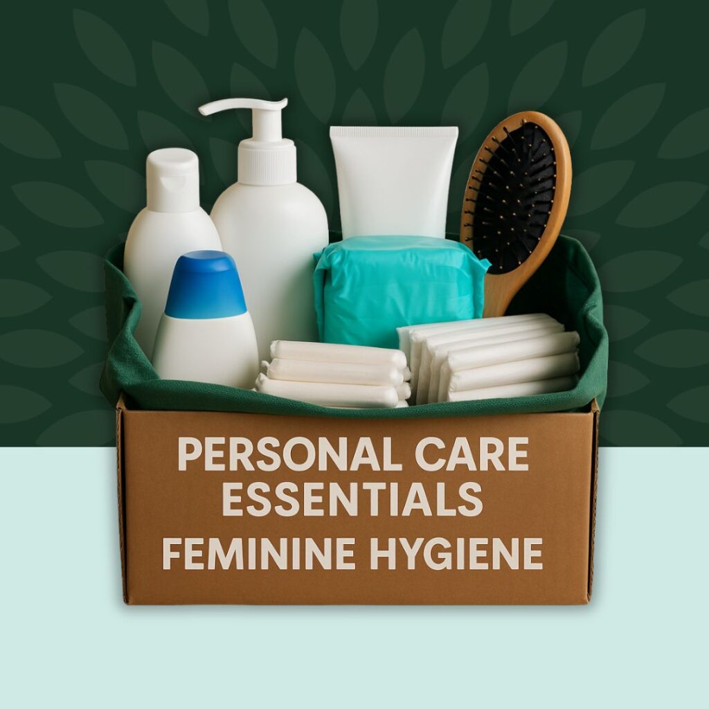 Nourishment is not only about food. Small comforts, herbal teas, familiar flavours, personal care essentials and feminine hygiene products help restore routine, dignity and emotional wellness during difficult days.